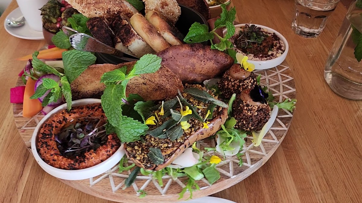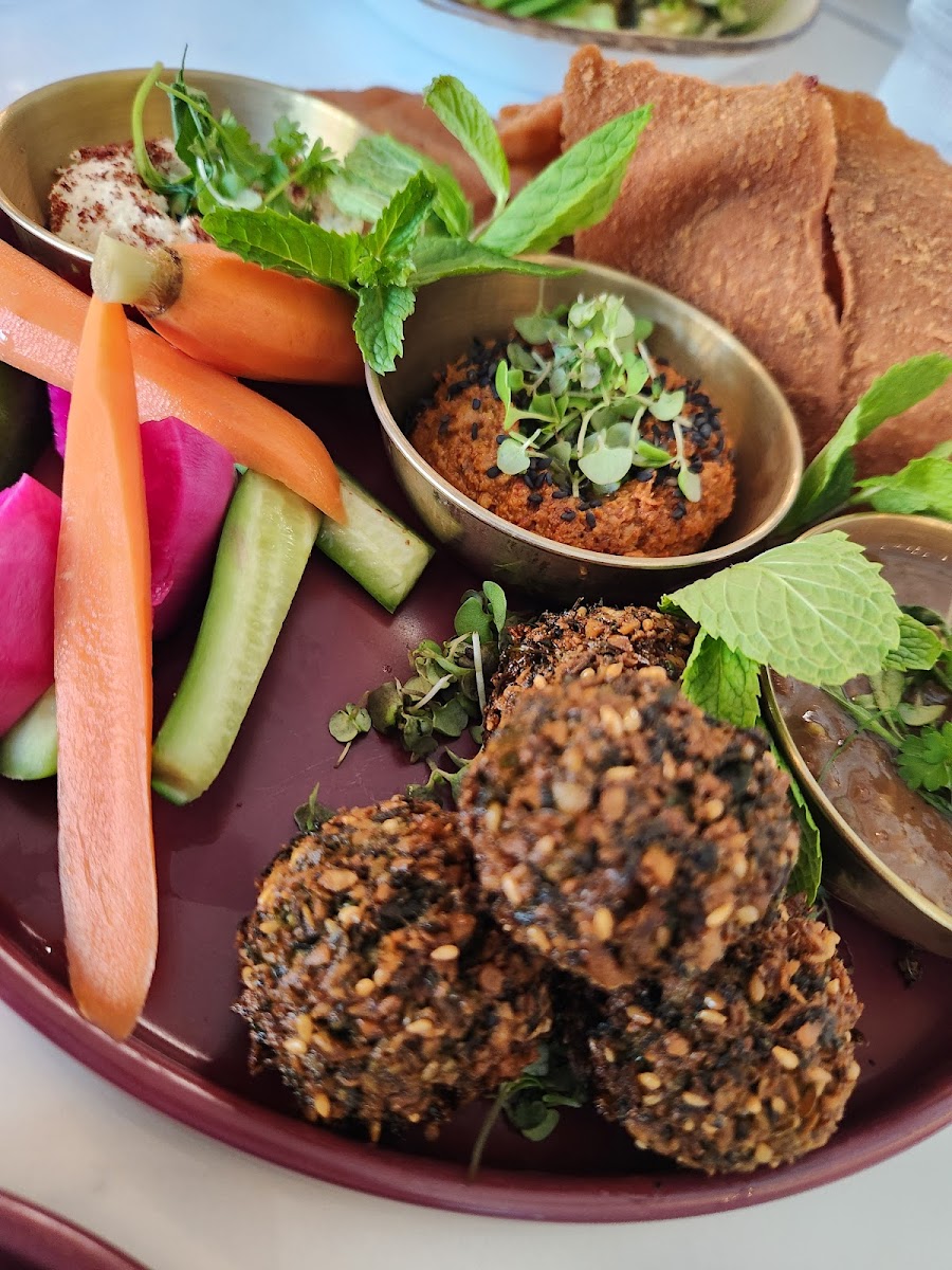 Cute little spot for dinner with quick service! The good: Bettenjan bi tahina: So flavorful! Loved all the sauces, and the dish came together beautifully — healthy food with great presentation. The not-so-good: Portion sizes were quite small, so we left feeling a bit unsatisfied. The sumac spritz tasted mostly like sugar water with barely any other flavor. Overall, a nice place if you’re looking for healthy options, though it would be great to see some chicken kebabs for non-vegetarians and falafel choices for vegetarians.