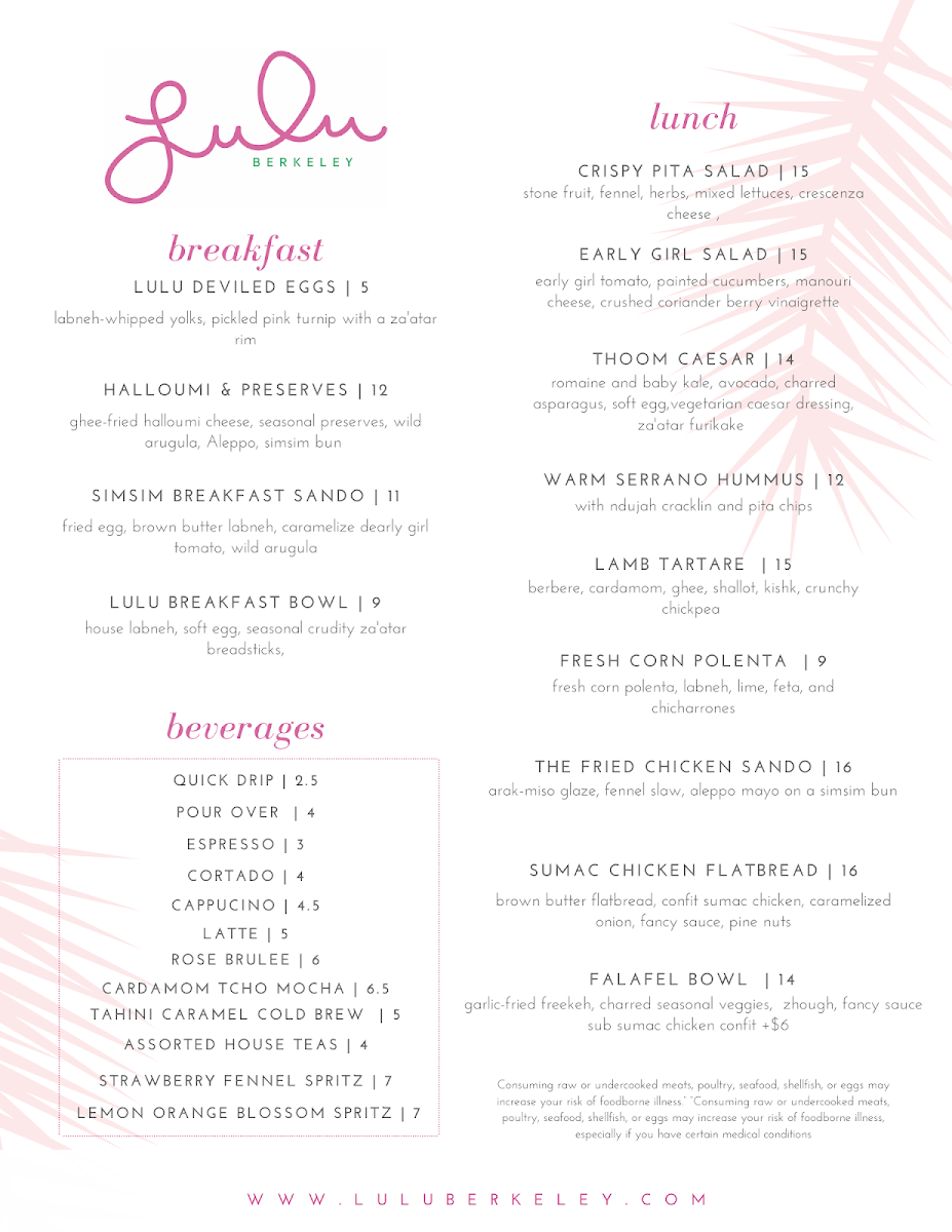 Lulu - Albany Menu